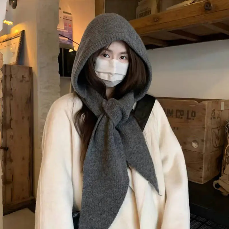 여성용 니트 바라클라바, 따뜻한 비니 숄, 귀마개, 원피스, 다목적 울 모자, 단색, 가을, 겨울, 2025 최신